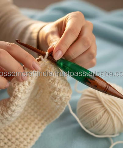 Crochet en bois époxy coloré fait main pour travaux d'aiguille à tricoter, avec surface polie durable et poignée ergonomique