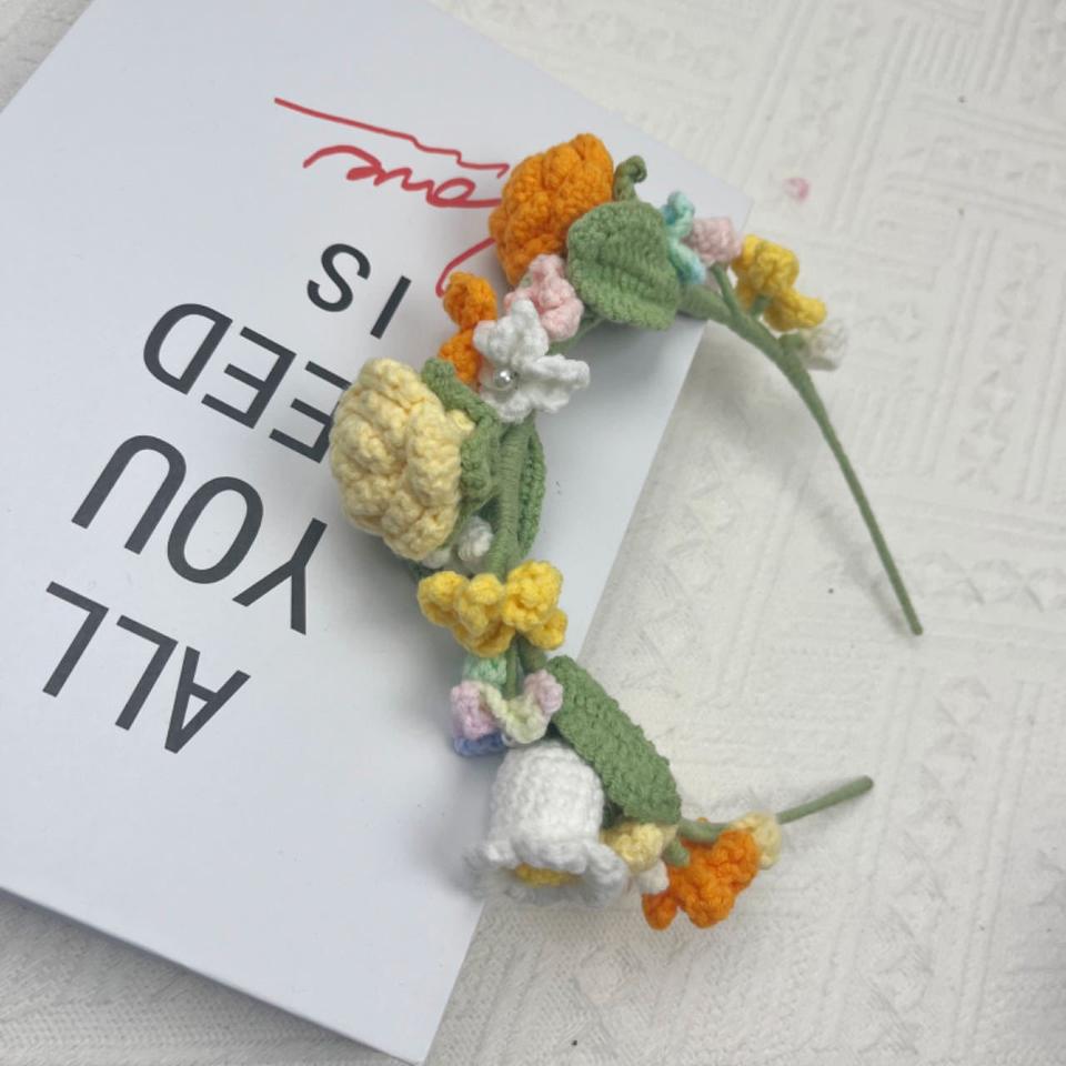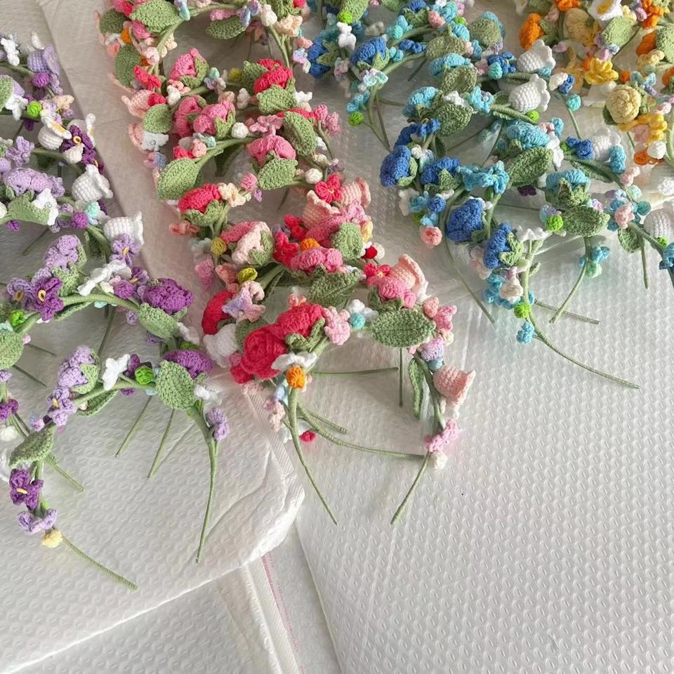 Guirlande décorative en fil de laine tricoté coloré à la main, guirlande de fleurs au Crochet pour accessoires de cheveux, couronne de voiture