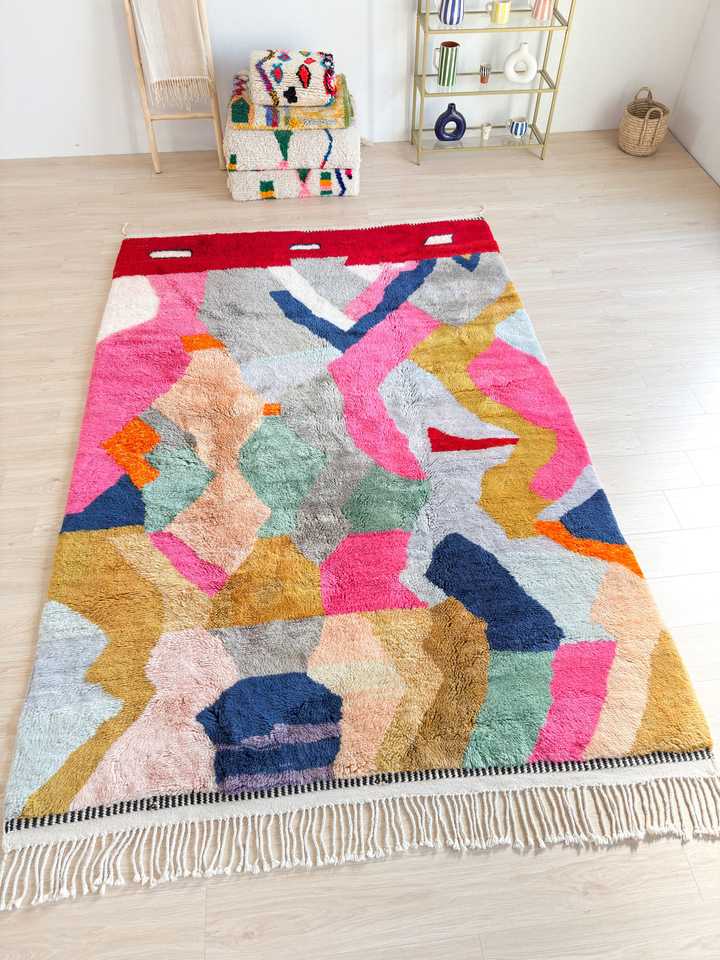 Tapis marocain contemporain fait main, tapis berbère en laine multi-fils noué à la main pour la chambre à coucher ou le salon au prix d'usine