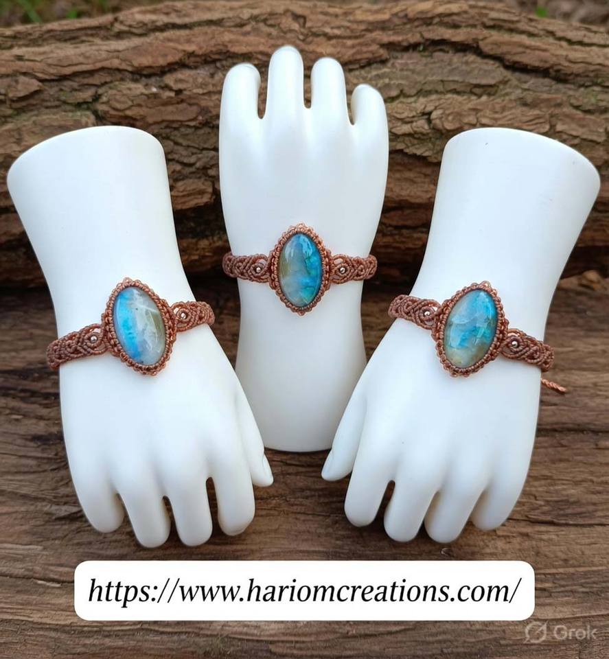 Bracelet en macramé en cuivre fait main avec pierre de lune, bijou bohème ajustable pour la guérison
