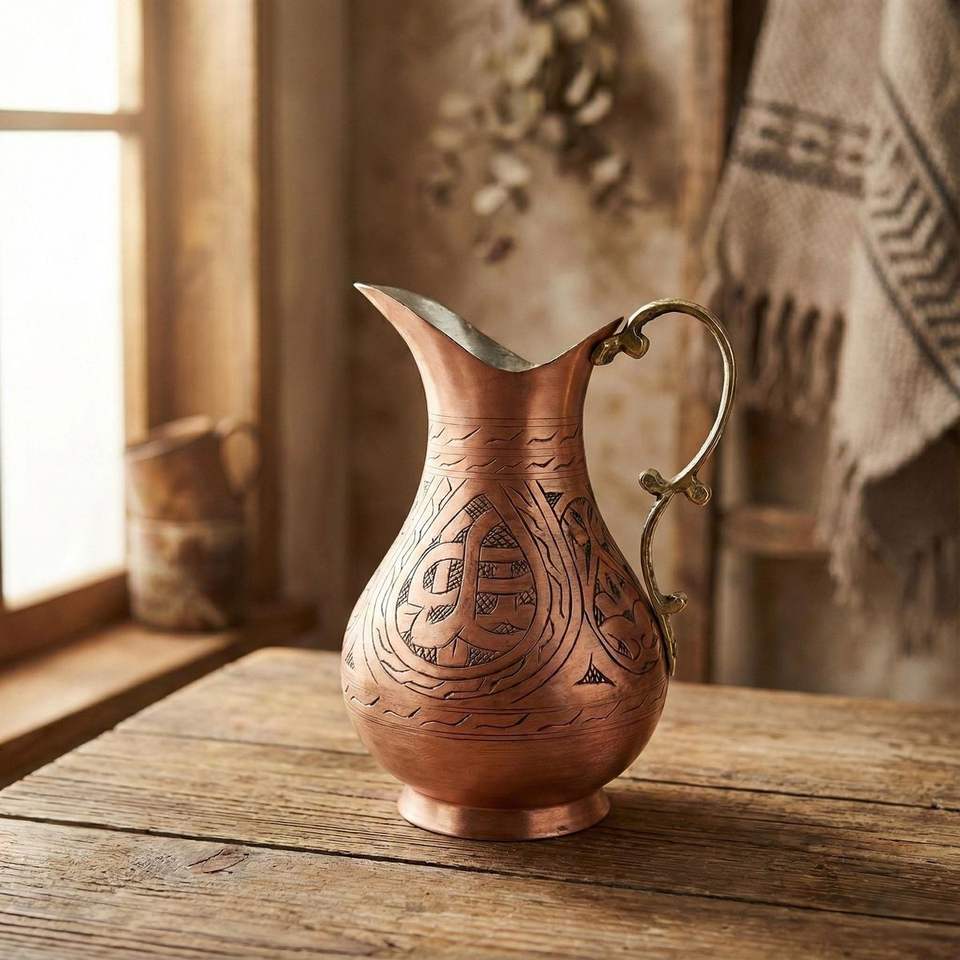 Pichet à eau en cuivre fait main avec poignée en laiton, carafe de service haut de gamme pour hôtels, restaurants, traiteurs, vaisselle de table