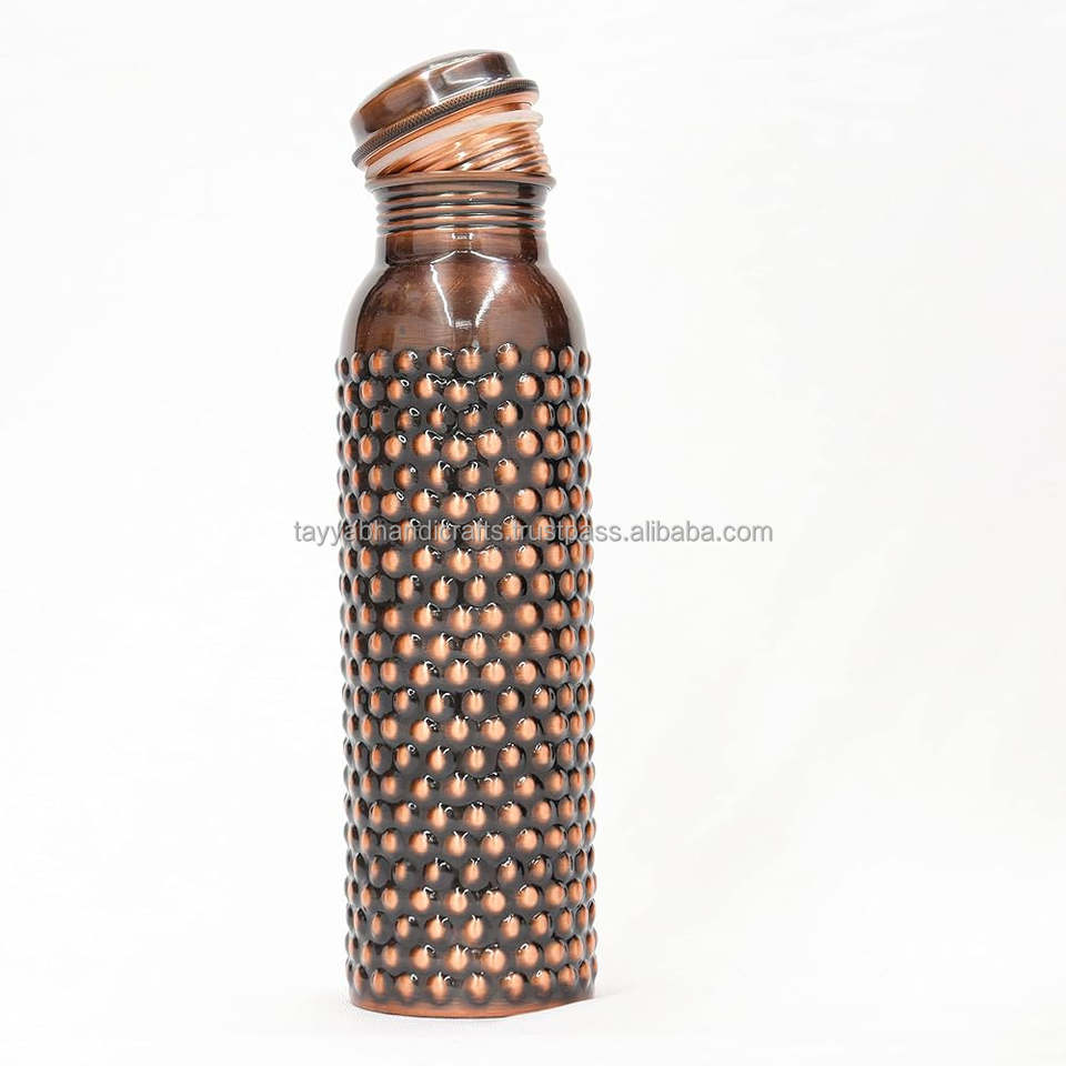 Bouteille d'eau en cuivre faite à la main 600ml à boire directement étanche cadeau de voyage gratuit en Inde