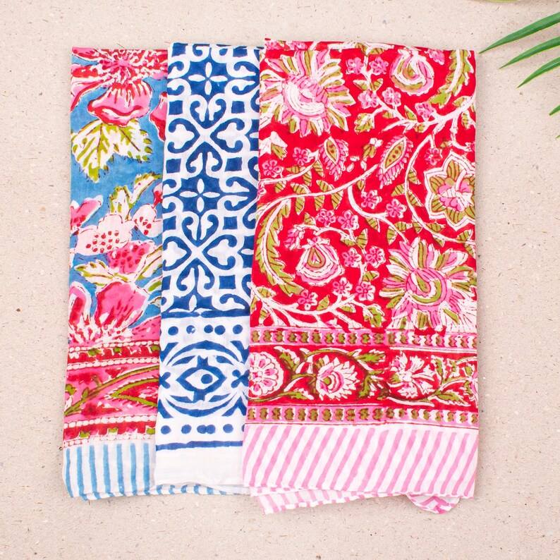 Ensemble de 3 bandanas en coton faits à la main, réutilisables, imprimés à la main, foulard d'été, bandana de plage