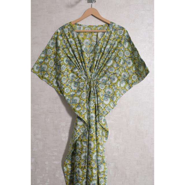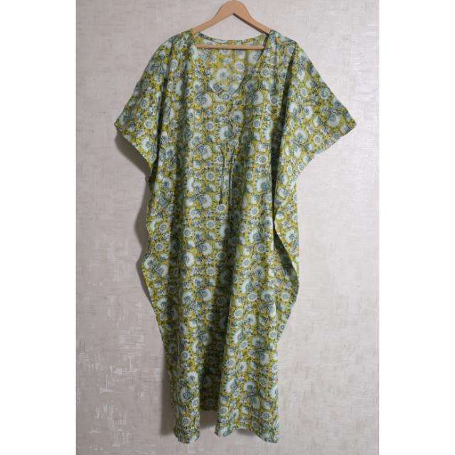 Robe longue bohème en coton bio faite à la main avec imprimé floral indien pour femme – Kaftan ample et naturel pour la plage ou l'été