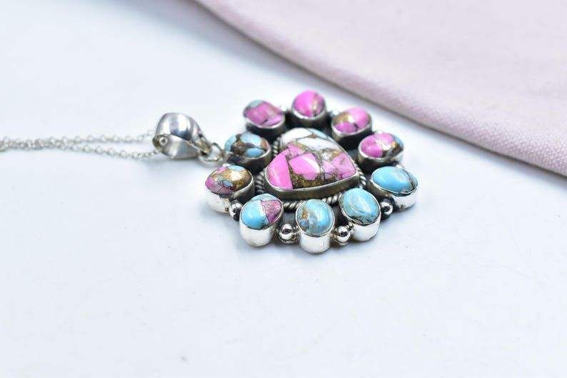 Pendentif dahlia de barbe à papa fait main en argent sterling avec chaîne réglable