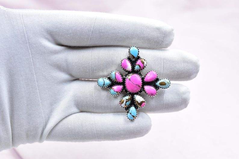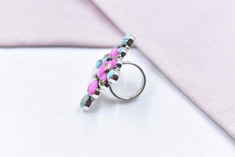 Handmade Cotton Candy Dahlia Sterling Silver Adjustable Ring Unique Floral Jewelry Perfect Gift For Women