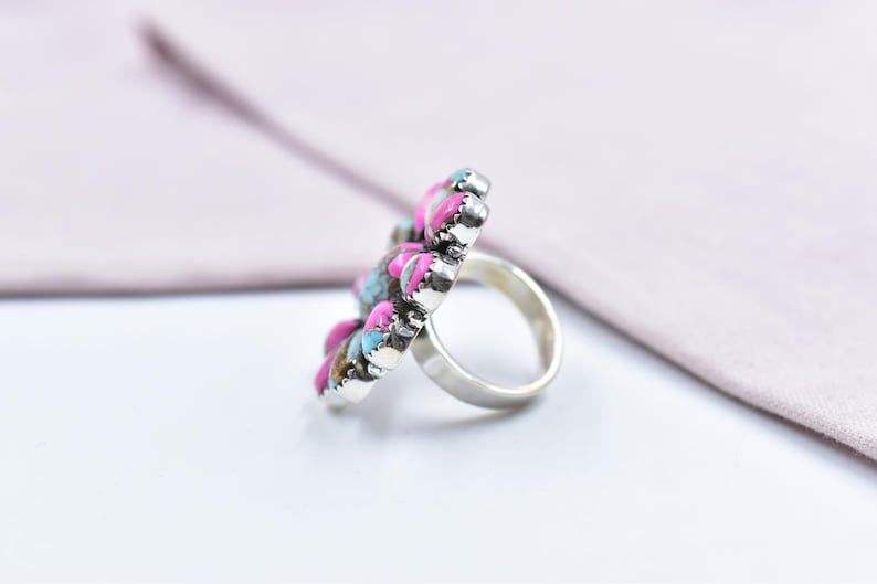 Handmade Cotton Candy Dahlia Sterling Silver Adjustable Ring For Fashion Lovers Unique Bohemian Jewelry For Special Occasion