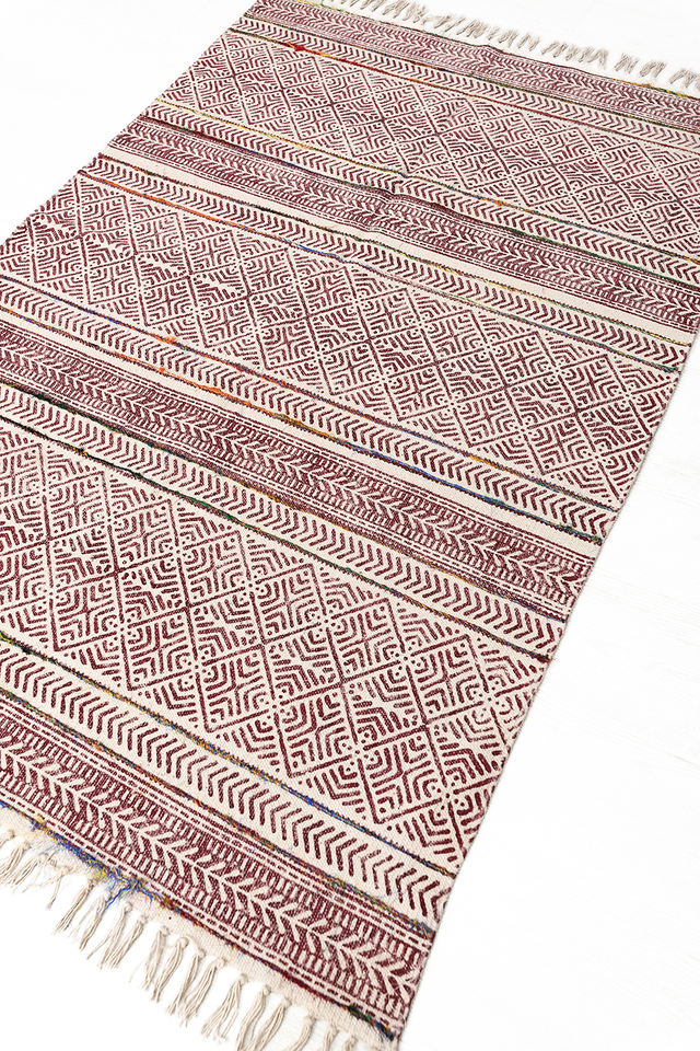 Lavable, Antidérapant, ACCEPTANT les animaux domestiques, Block-Printed Cotton Dhurry