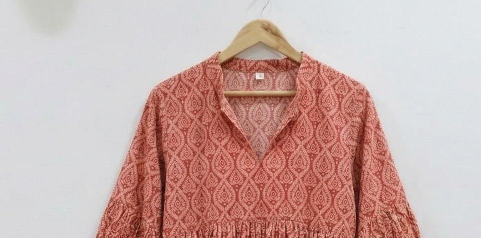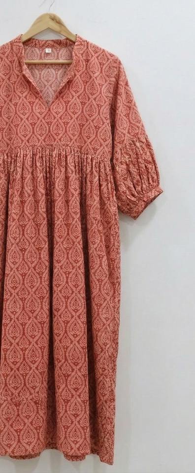 Robe midi en coton faite à la main avec impression au bloc, robe d'été florale bohème pour femmes, robe décontractée confortable à coupe ample, style indien