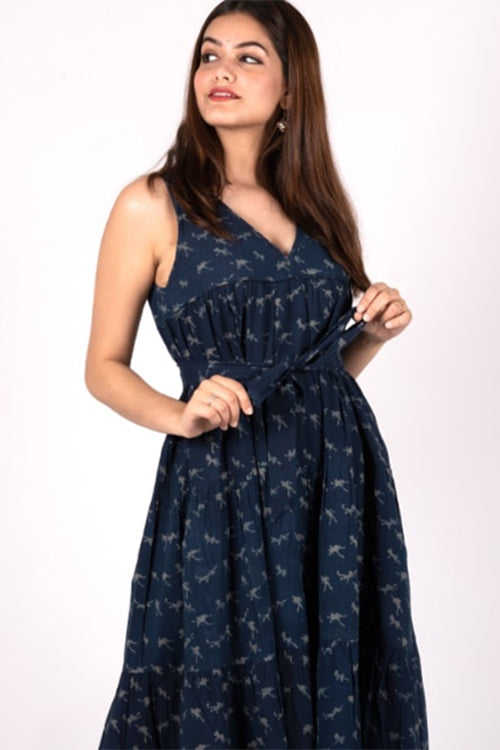 Handmade Cotton Indian Block Print Summer Dress Women Casual Sleeveless Breathable Floral Pattern Women's Summer Dress Pockets
