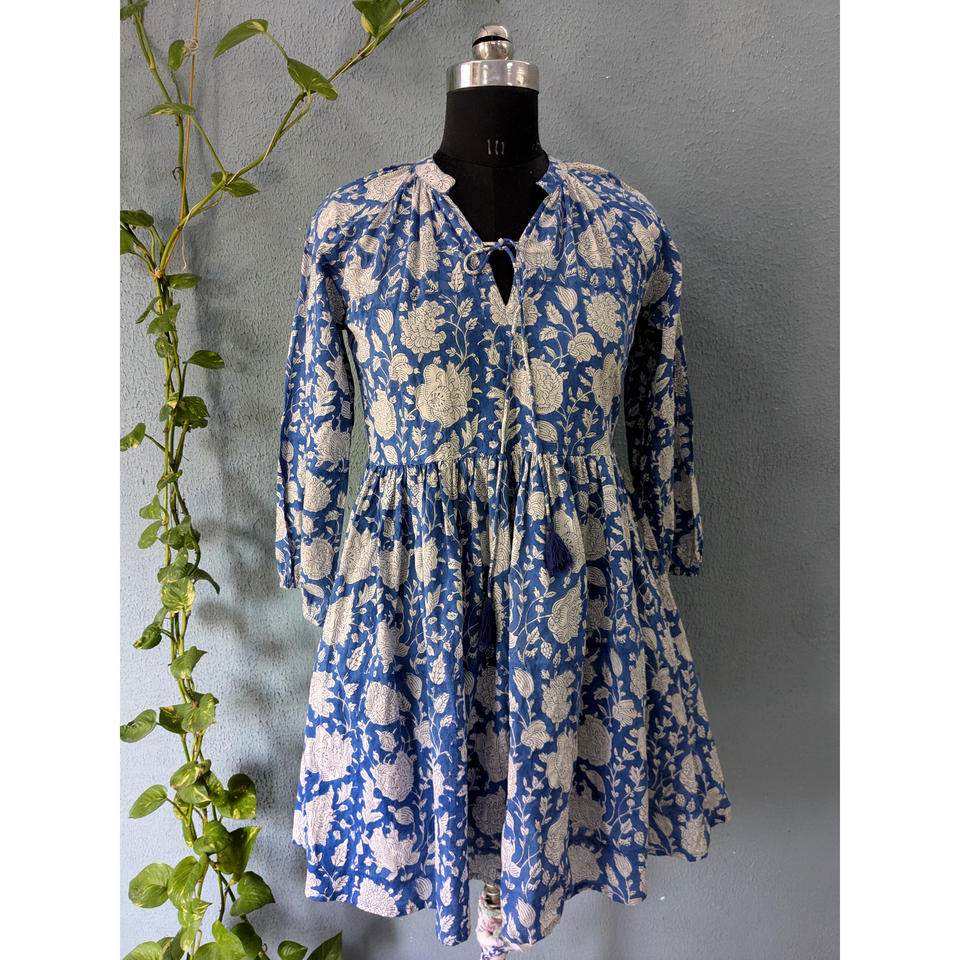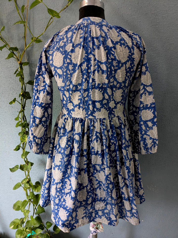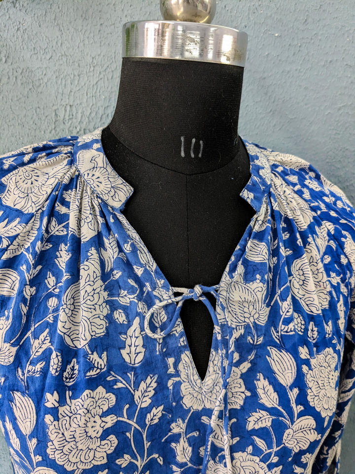 Robe d'été en coton indien imprimé à la main pour femmes, décontractée, manches longues, respirante, motif floral, robe d'été douce pour femmes