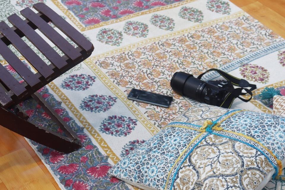 Tapis de créateur Tapis à motifs imprimés en blocs à la main Tapis brodés 100% coton Tapis pour la maison et le salon