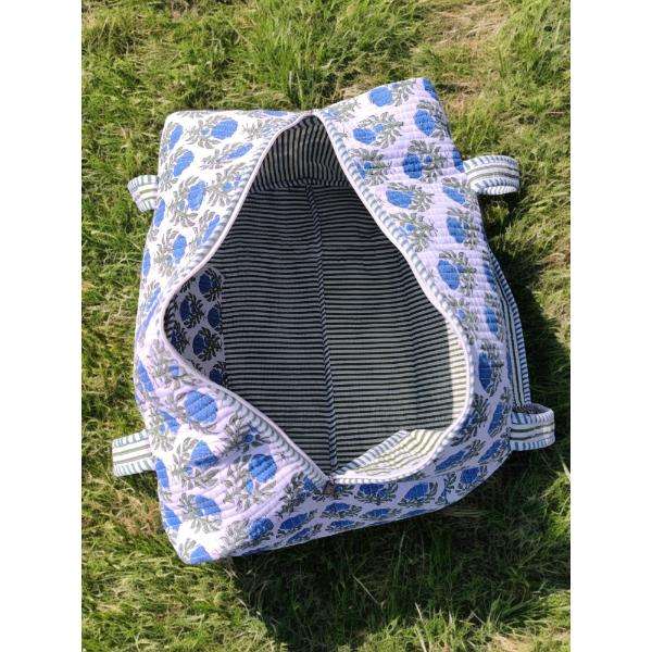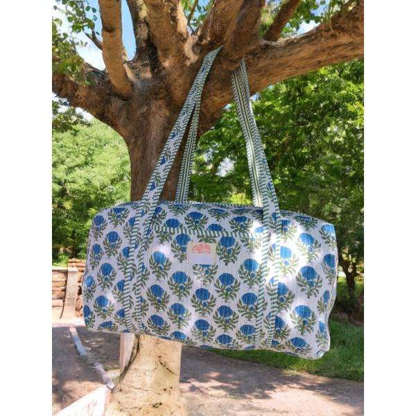 Handmade Cotton Quilted Duffle Bag With Spacious Interior Lightweight Durable Construction Stylish Block Print Ideal For Weekend