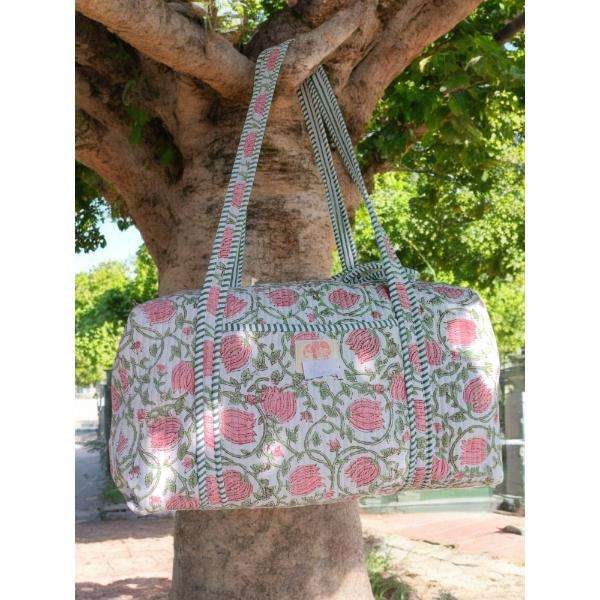 Sac de voyage matelassé en coton fait main avec imprimé traditionnel en blocs, léger, durable et parfait pour la salle de sport, le travail, les voyages ou les occasions décontractées