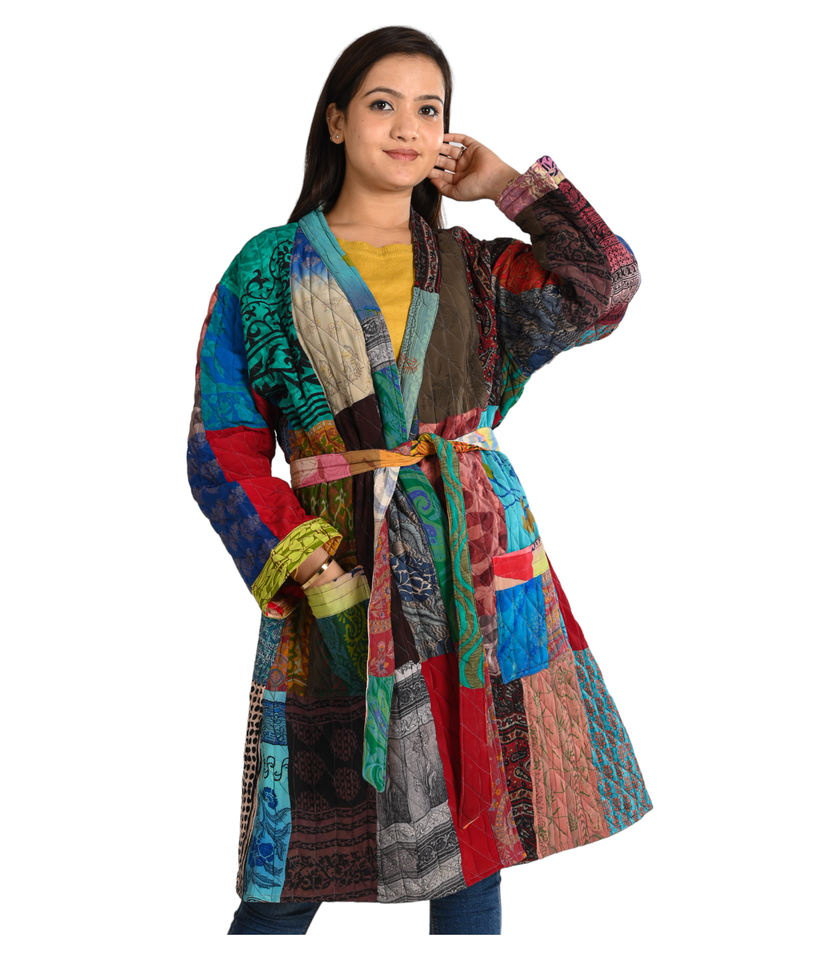 Vestes pour femmes en coton faites à la main, personnalisées, chaudes, d'hiver, à manches longues, avec boutons, ceinture, imprimé floral, patchwork, respirantes, tissées