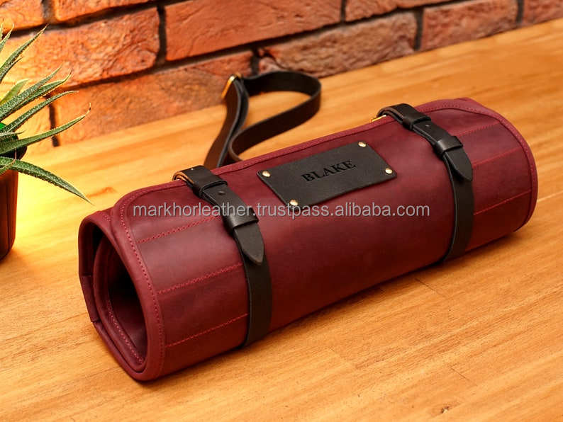 Étui à couteaux enroulable en cuir de vachette de luxe fait main avec protection anti-odeur robuste, sac à outils professionnel LSKR-0010