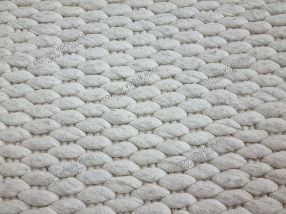 Tapis Kilim en Laine Blanche Confortable Fait à la Main Motif Abstrait à Pile Épaisse Conception de Boucle Tuftée