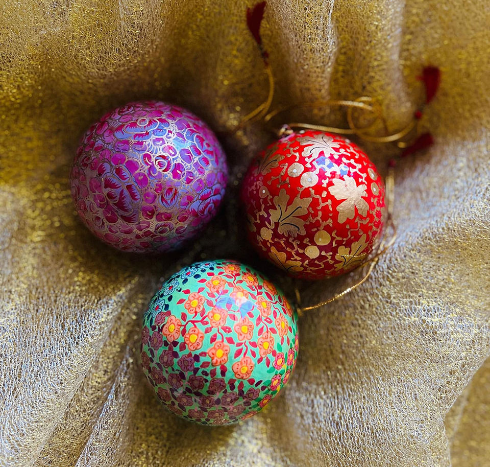 Ensemble de 3 boules décoratives en papier artisanal fait à la main colorées peintes à la main Ornement d'arbre de Noël de vacances de Noël