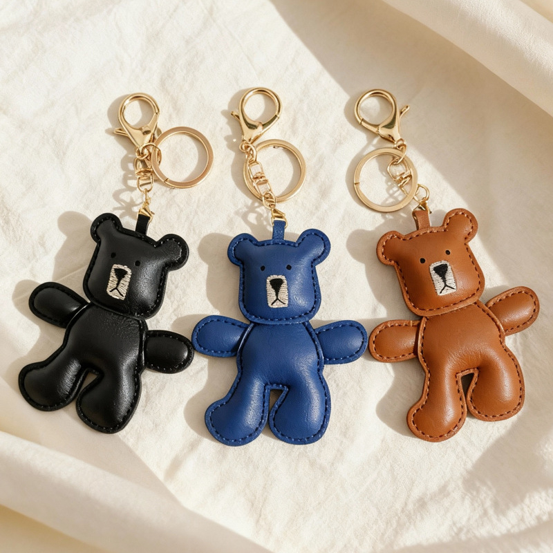 Porte-clés mini ours en peluche en cuir souple, artisanal, design animalier, petit ours mignon, breloque bijou, pendentif pour sac femme