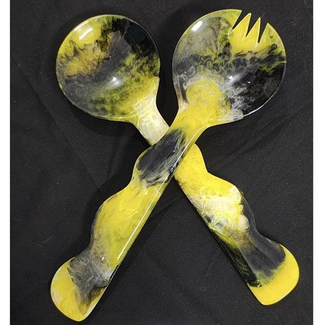 Ensemble de cuillères en résine faites à la main créatives Serveurs à salade en résine ambre Outils de cuisine Prix de gros Ustensiles en résine multicolore Outils à salade