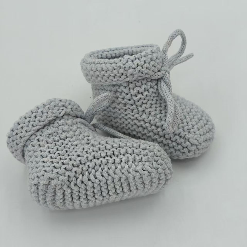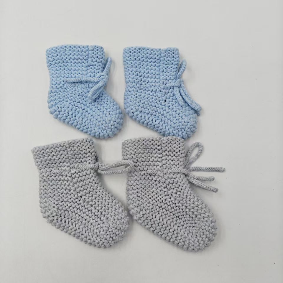 Chaussons bébé faits main au crochet, chaussettes souples en tricot pour nouveau-né avec fermeture à nouer