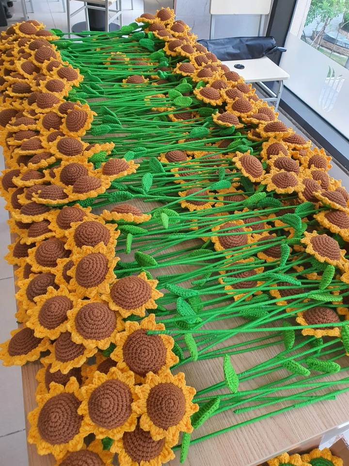 Fleurs artificielles en laine tricotée au crochet faites à la main, lot de fleurs floquées, cadeau fait à la main