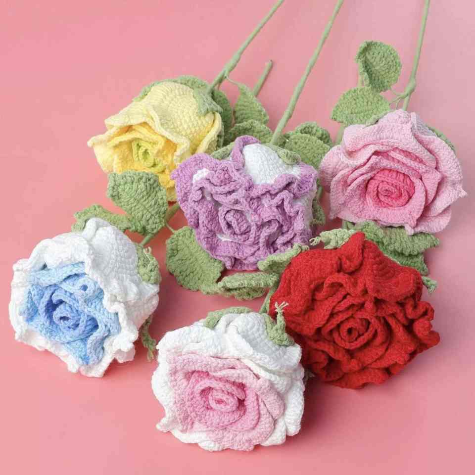 Crochet fait à la main Mini Thai Rose Fleurs artificielles Style de couronne créative pour l'obtention du diplôme de Noël Décors commerciaux uniques