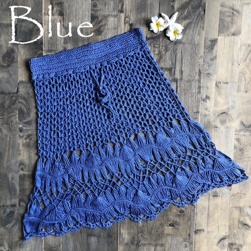 Jupe courte en crochet faite à la main de couleur unie avec cordon de serrage pour les femmes Style décontracté avec taille naturelle pour les vacances d'automne Vêtements de plage