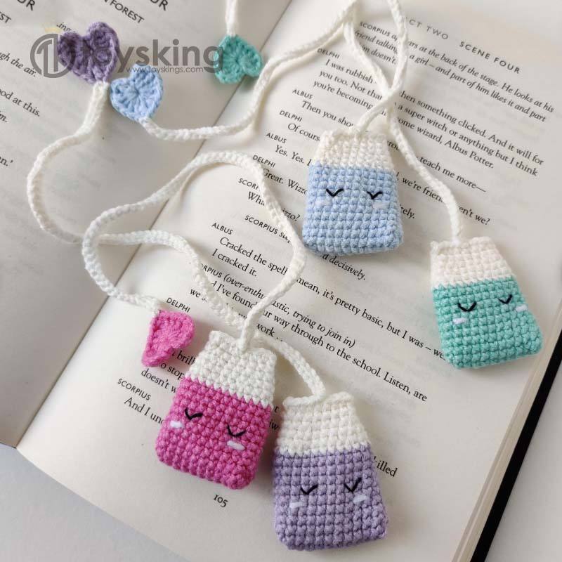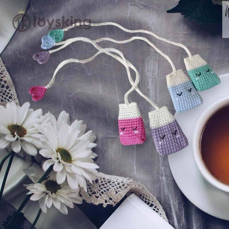 Marque-page en crochet fait main - Cadeau créatif pour les amateurs de livres et de thé, accessoire de lecture unique, marque-page amigurumi
