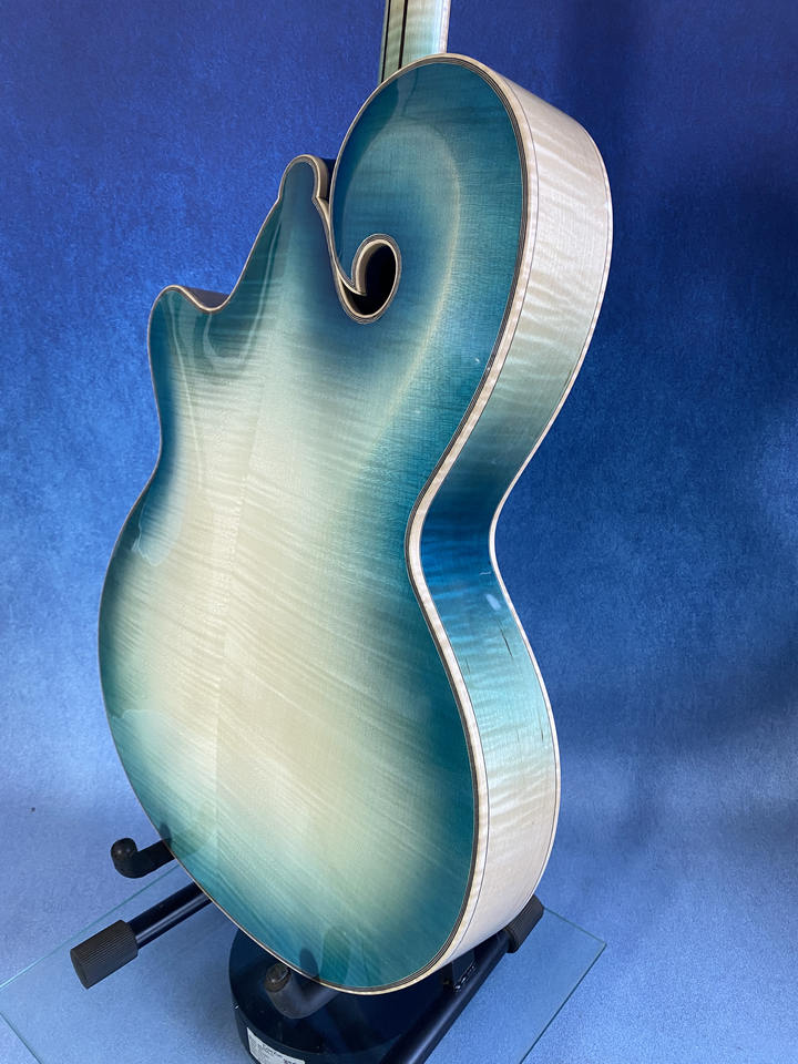 Guitare Jazz Archtop Faite à la Main et Personnalisée - Style Grande Mandoline Bleu Nitro Yunzhi 6 Cordes Entièrement en Érable avec Dos en Épicéa et Table en Ébène et Laiton