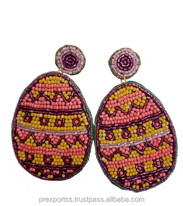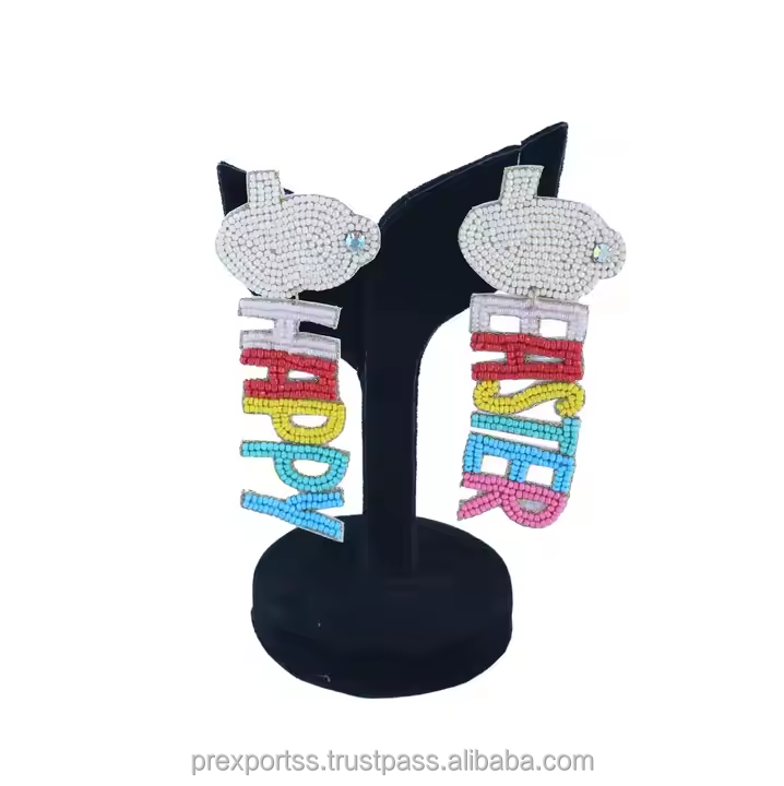 Boucles d'oreilles créoles personnalisées faites à la main avec perles, motif lapin de Pâques, pour femmes, bijoux unisexes mignons et colorés, en cristal et strass, taille personnalisée, pour fête