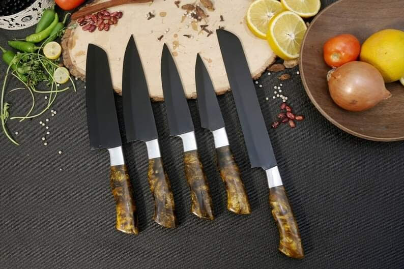Ensemble de 5 couteaux de cuisine faits à la main en acier damas avec étui en cuir personnalisé de meilleure qualité OEM ODM vente en gros
