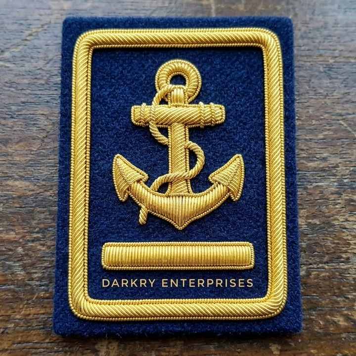 Patch de blazer rectangulaire fait main sur mesure, motif ancre en fil de bullion, bordure en corde nautique, emblème, logo en fil doré, service personnalisé