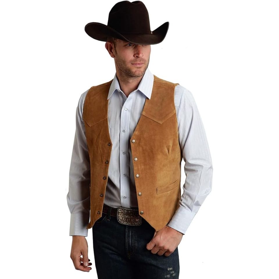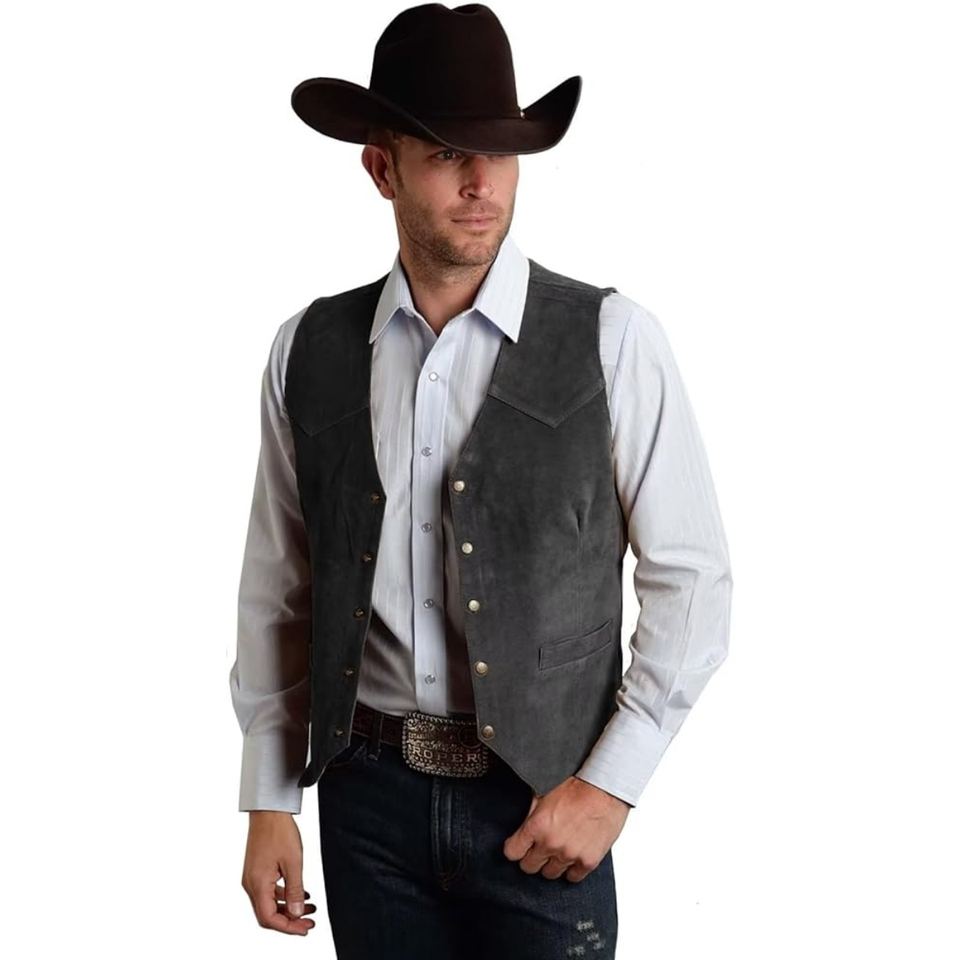 Gilet de moto en cuir véritable fait main de style cowboy, conçu pour les motards à la recherche de résistance durable, design classique