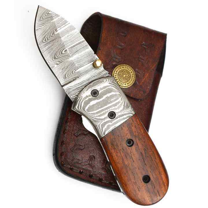 Couteau de poche pliant à lame en acier damassé fait main et personnalisé Couteaux d'extérieur à manche en bois