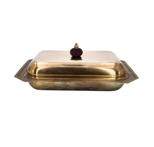 Beurrier en acier inoxydable poli fait main, durable, finition contemporaine, avec couvercle, forme irrégulière, idéal pour les réceptions
