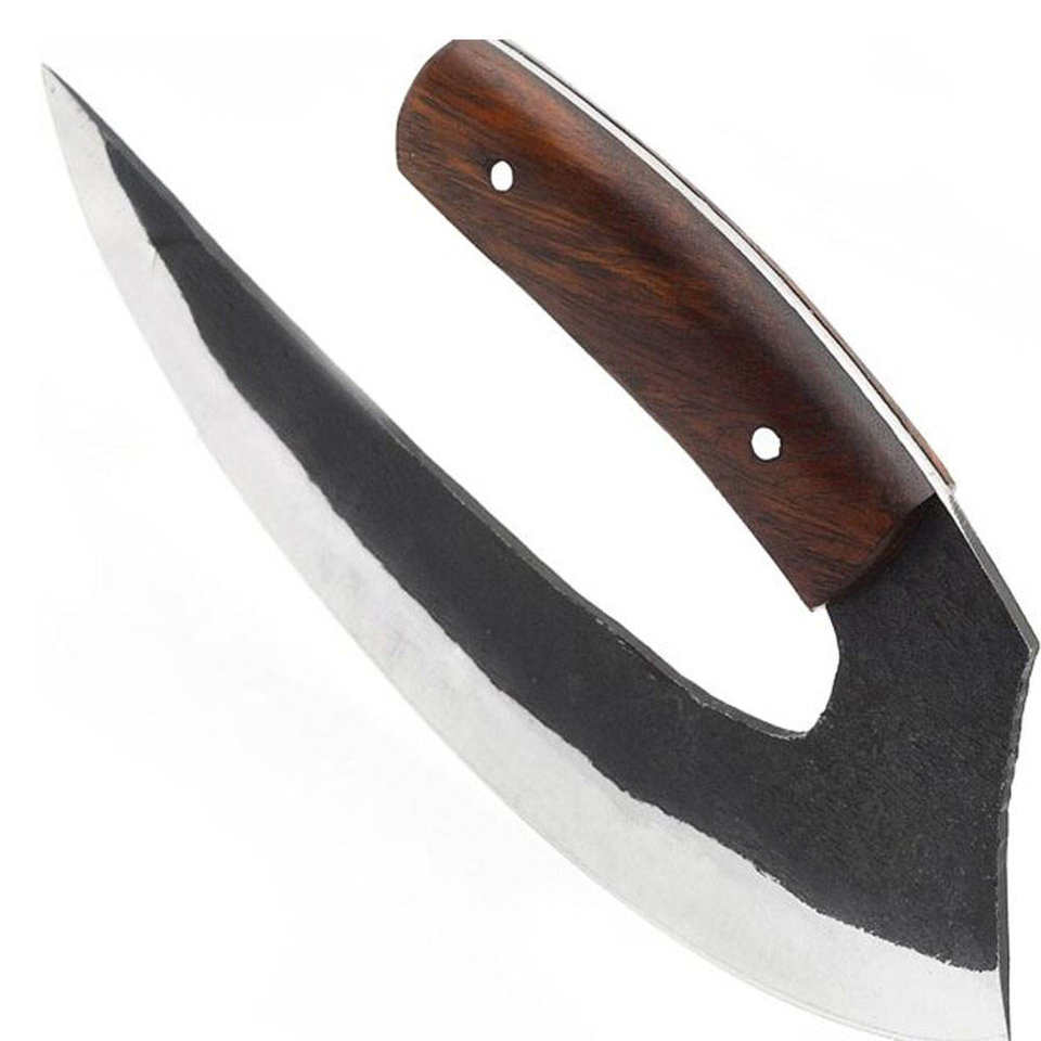 Hache à pizza artisanale sur mesure en acier à haute teneur en carbone, style médiéval, pour la découpe de pizzas, avec étui en cuir fin et manche en bois de rose