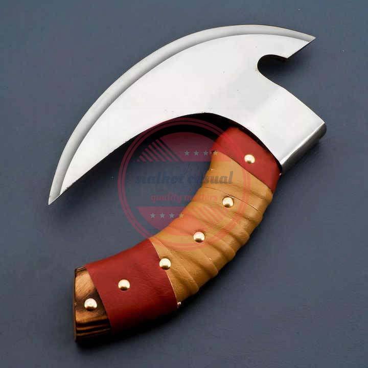Hache à pizza en acier à haute teneur en carbone faite à la main avec gaine en cuir Hache à pizza avec manche en bois
