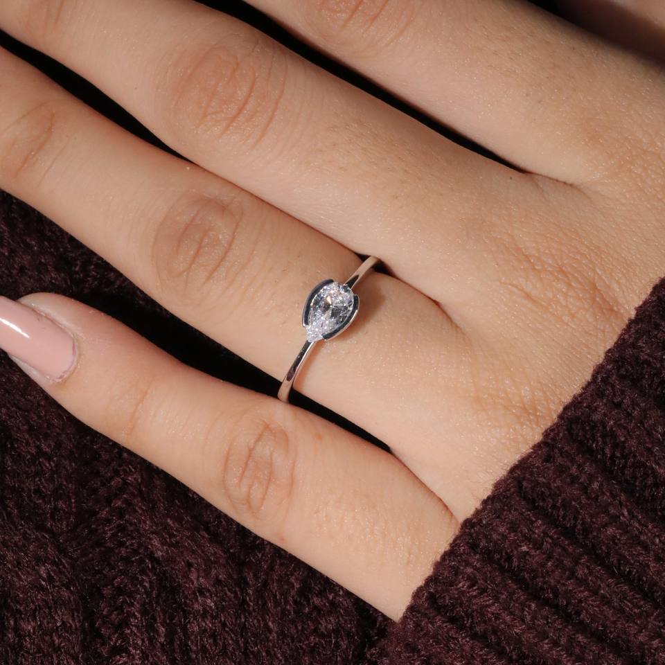 Bijoux personnalisés faits à la main 0.70CT bague en diamant poire gouttelette 14K or massif diamant cultivé en laboratoire alliance