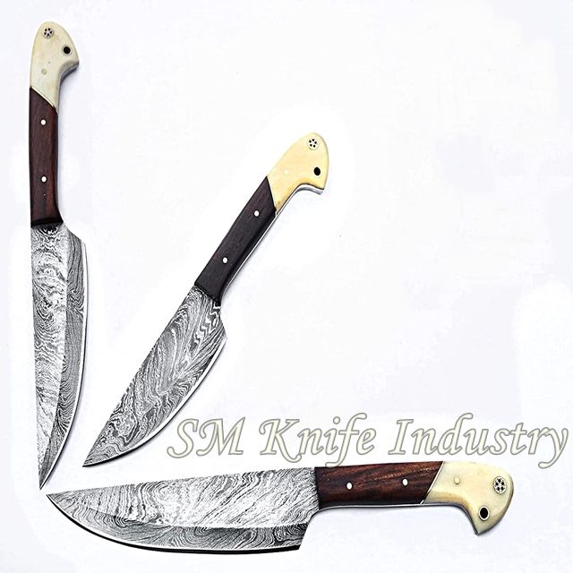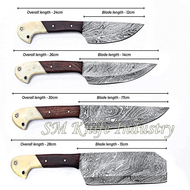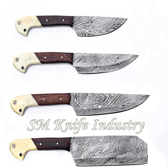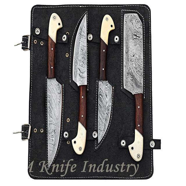 Ensemble de couteaux de chef damas faits à la main sur mesure 4 pièces lame en acier au carbone de 8 pouces manche en acier inoxydable bois coupe de cuisine usage alimentaire
