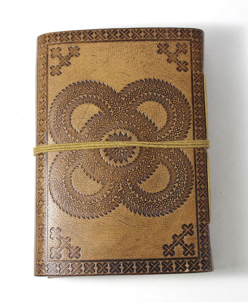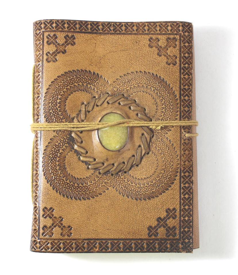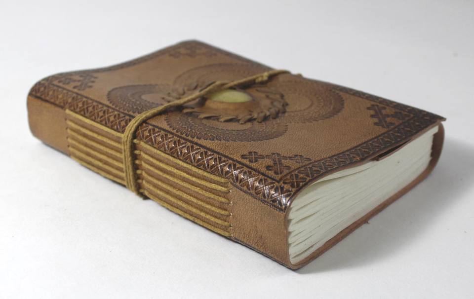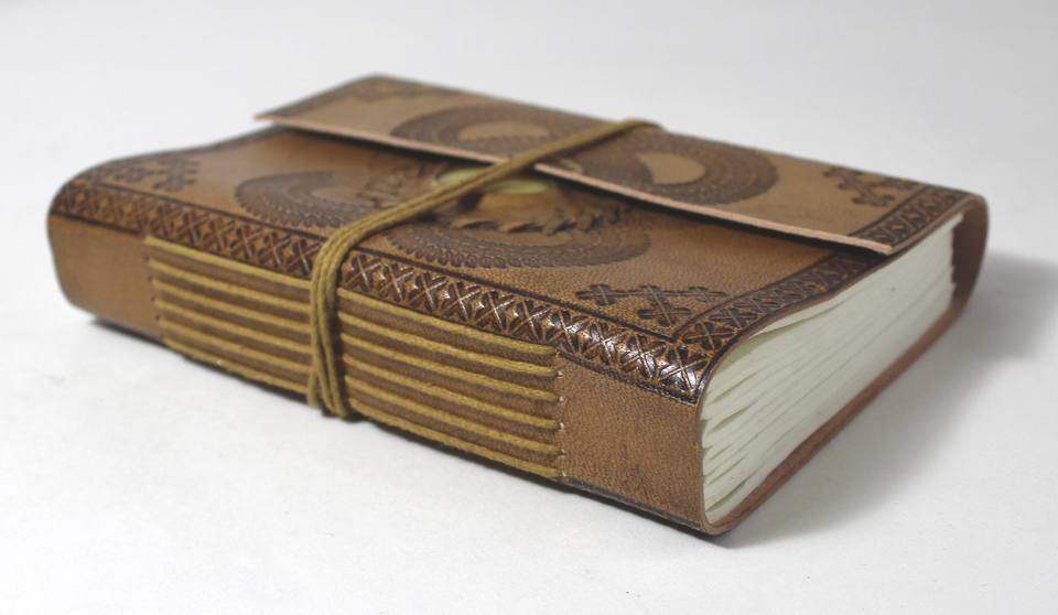 Journal de voyage personnalisé fait main avec design en relief, travail sur pierre, cordons en coton assortis, journal en cuir véritable
