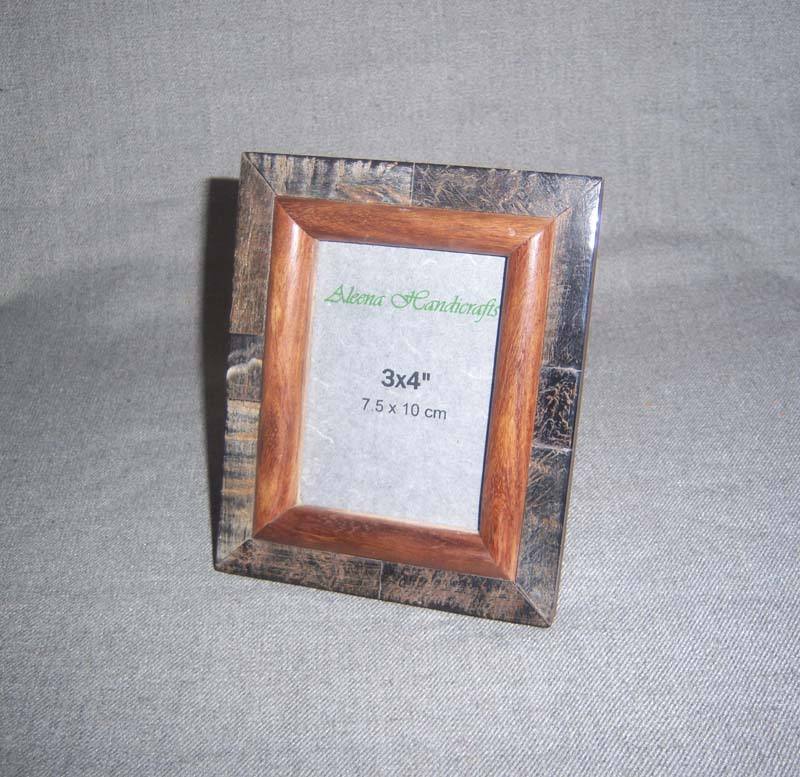 Cadres photo vintage personnalisables faits à la main, écologiques, en MDF avec incrustation de corne naturelle et sérigraphie, en résine imitation corne