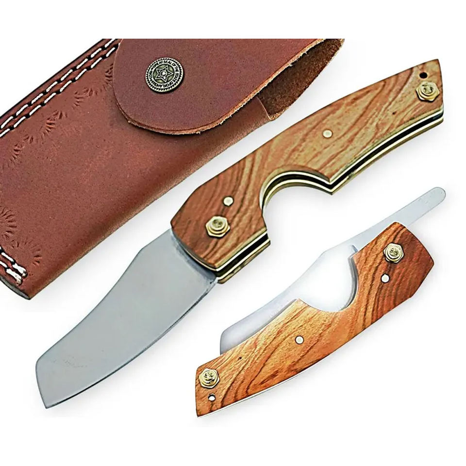 Couteau à cigares artisanal D2, couteau de poche, manche en bois bleu, élégant avec étui en cuir