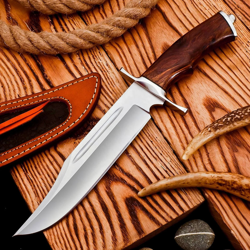 Couteau de chasse en acier D2 fait à la main avec manche en bois et gaine en cuir fin couteau Viking couteau d'extérieur PAR chirurgical crédible