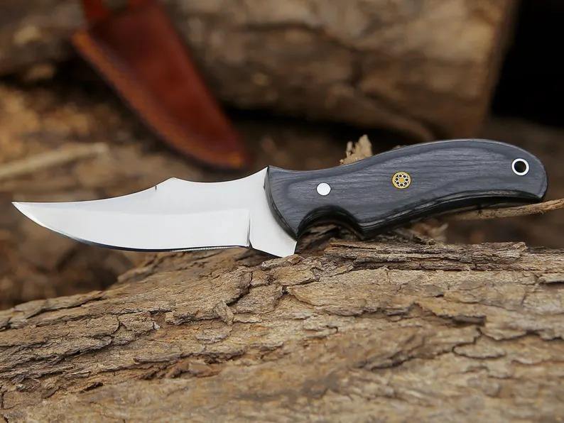 Couteau Skinner de chasse en acier D2 fait à la main avec manche en bois Pakka et belle gaine en cuir personnalisable OEM pris en charge