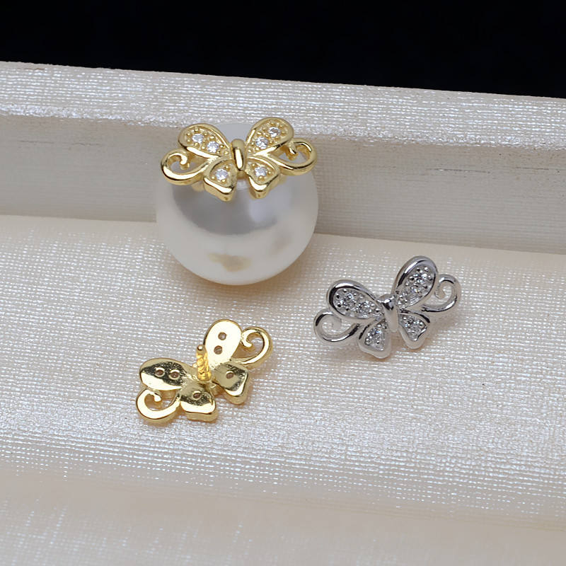 Accessoire de bijouterie en argent 925 fait main, forme de papillon baroque, plaqué, 6 mm, capuchon de perle creux, pendentif pour bijoux en argent - 3846