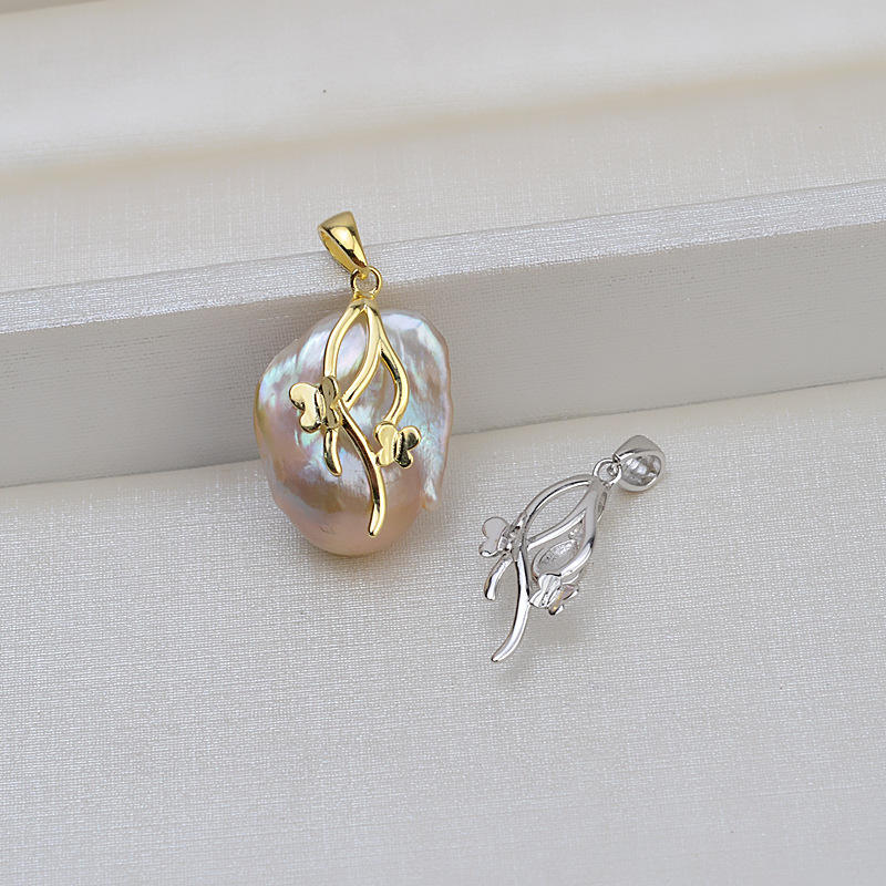 Collier en argent 925 fait main avec pendentif papillon en perle baroque, perle en forme de femme avec base creuse, accessoire plaqué 1400