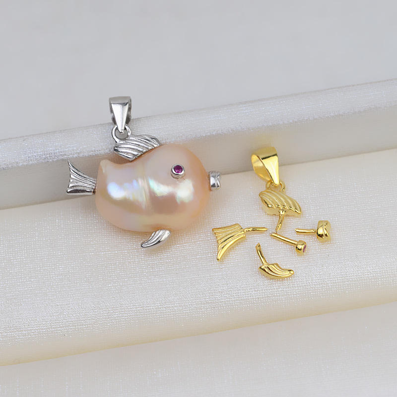 Pendentif en argent 925 fait main avec perle baroque, petit collier en forme de poisson, perle, composants de bijoux vides pour femmes