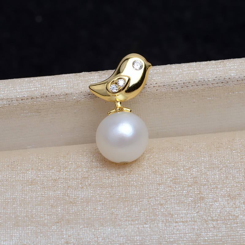 Pendentif en argent S925 de style baroque fait main avec une petite tête d'oiseau, 8-12 perles, plaqué or, sertissage vide 4415