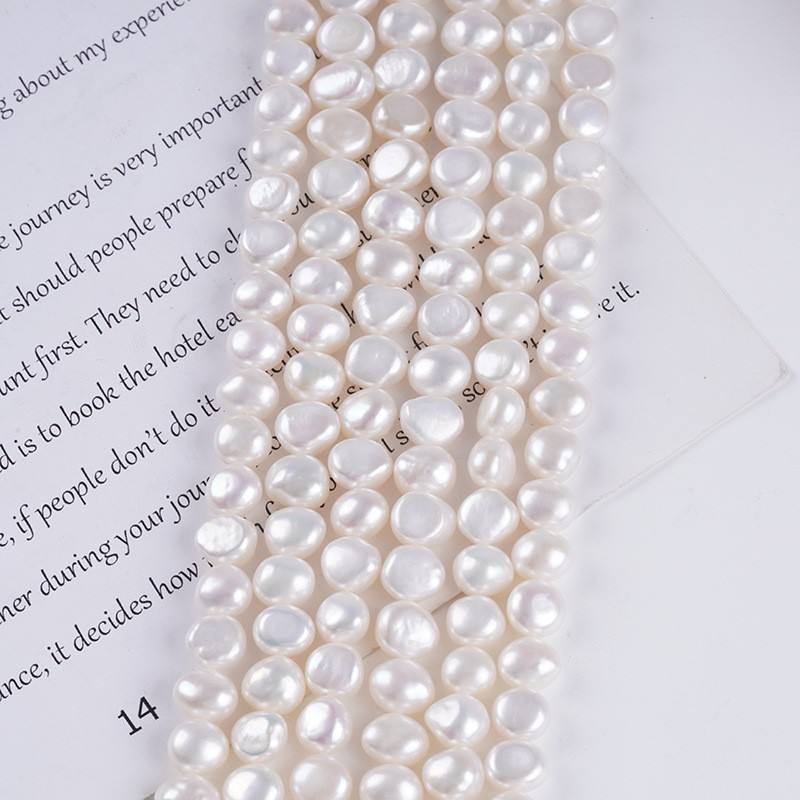 Perles d'eau douce naturelles de 7-8 mm, faites à la main, pour la fabrication de bijoux, deux côtés brillants, trou latéral, vente en gros pour bracelets et colliers